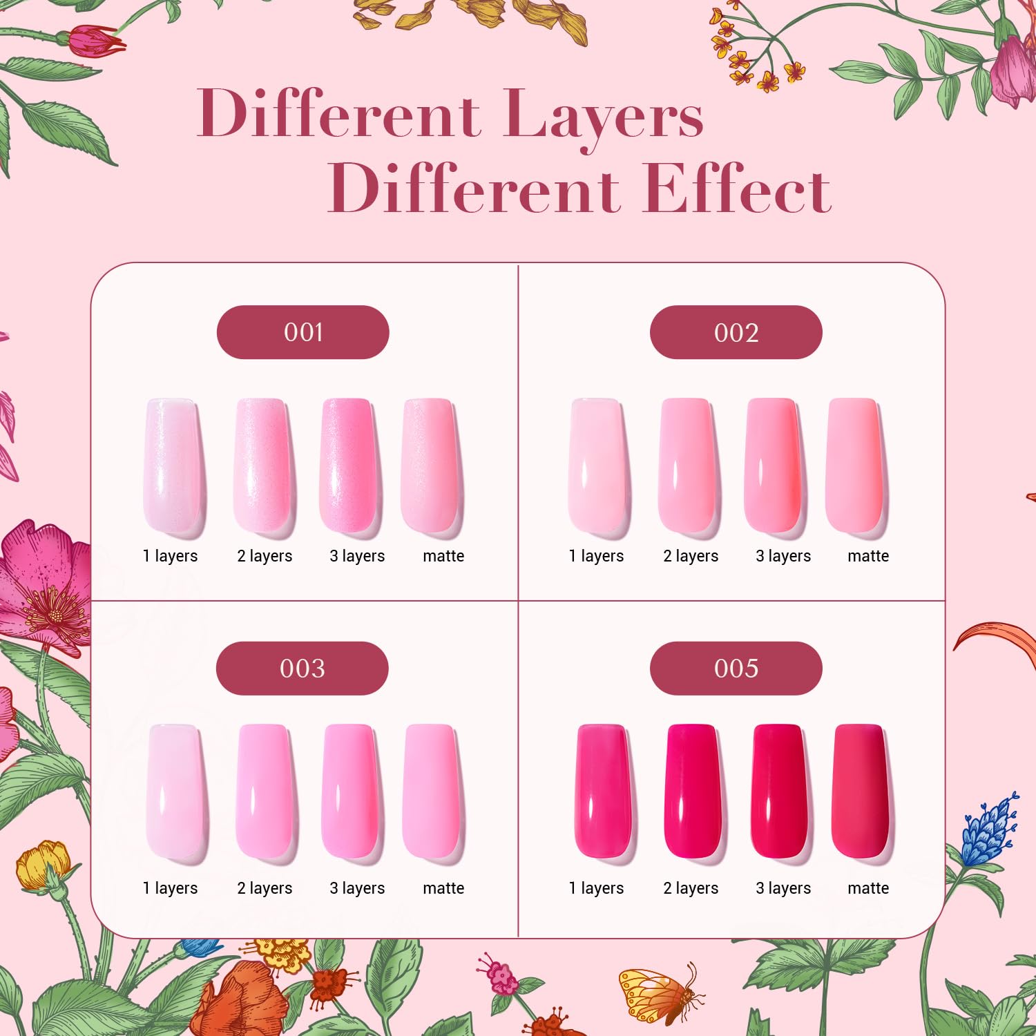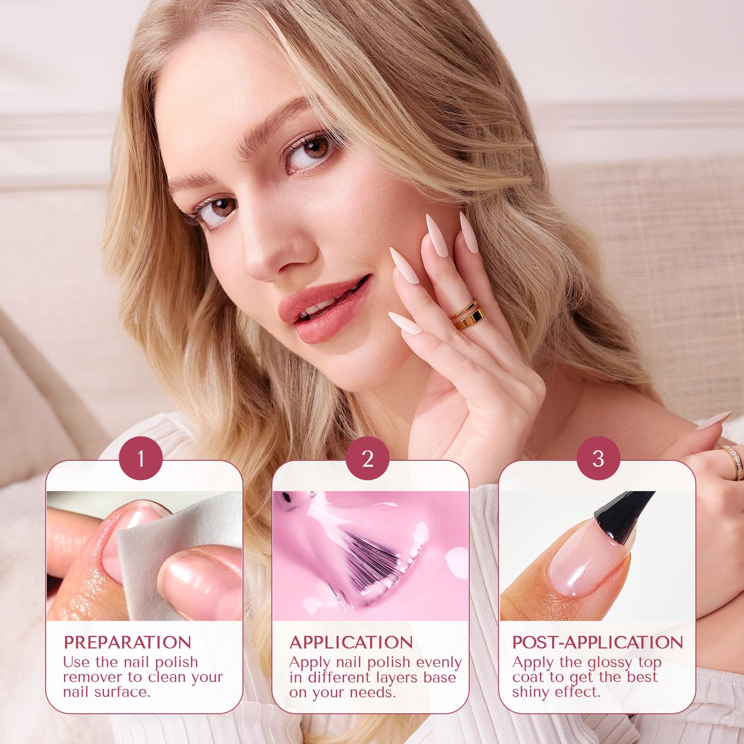 High Gloss Shine & Multiple Effects: Our Top Coat finish prevents scratches, chips, and smudges while increasing color saturation by 20%, making your nails shine more. Different layers produce different effects – one layer creates a jelly transparent look while two layers result in a deepened pink appearance according to your preferences