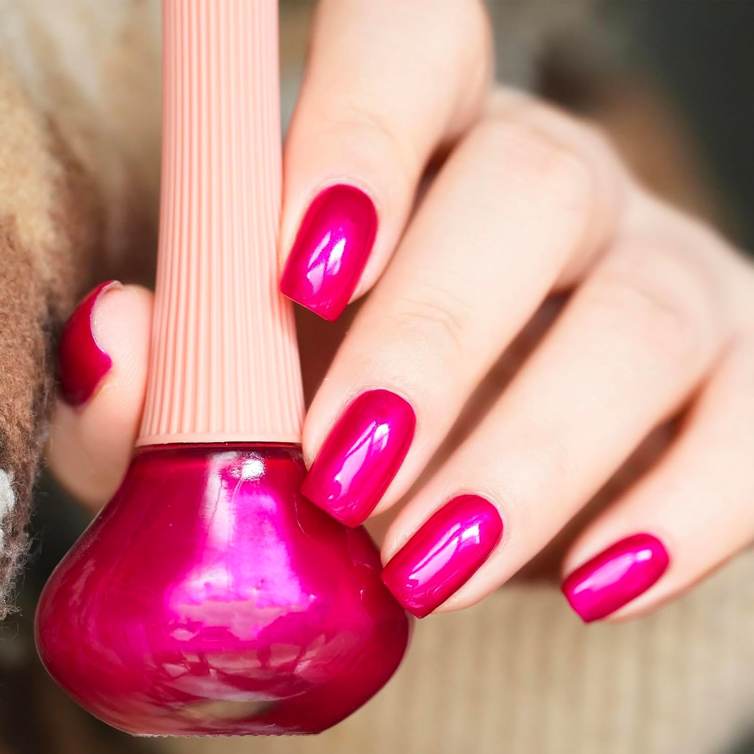 Hot Pink Nail Polish, 12ml Quick Dry Nail Lacquer, Super Lustrous Nail Enamel Polish, Shimmer Iridescent Chrome Nail Art Varnish, 0.41 fl oz