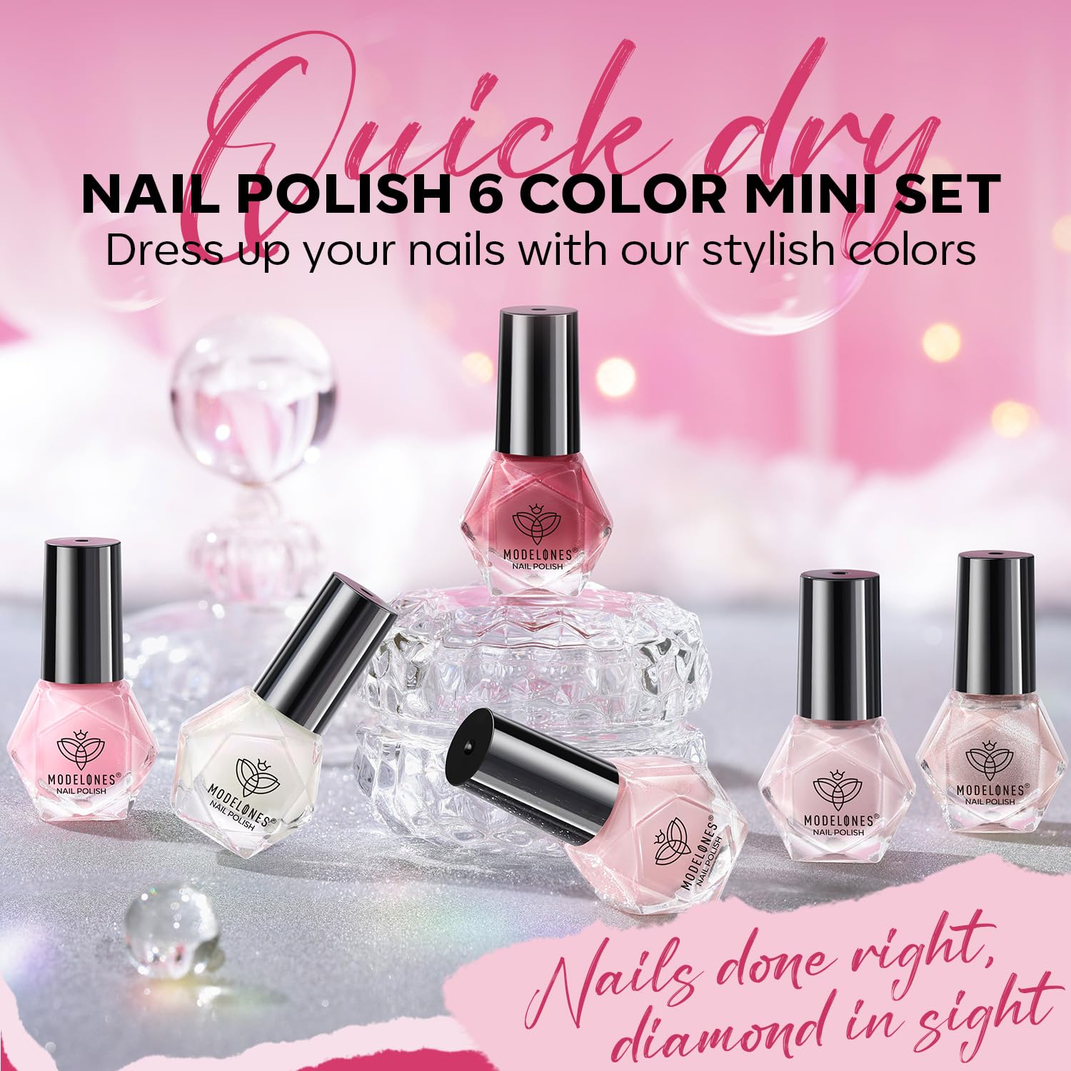[Faster and Efficient Drying] Modelones pink nail polish dries rapidly, saving you 30% more time compared to other brands. Each layer sets in just 90-120 seconds, allowing you to complete a full, two-layer application on both hands in approximately 15 minutes. Perfect for those who value both time and quality. Say goodbye to long waiting times!